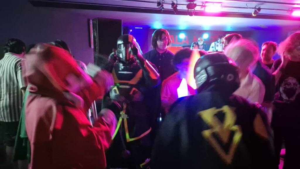 A medida que avanza la noche, la diversidad de asistentes se vuelve aún más evidente: cosplays de Spider-Man, personajes de animes y personajes de videojuegos. También hay quien lleva una camiseta de One Piece, SNK o Fairy Tail. Todos conviven en perfecta armonía, posan para fotos, se saludan y se conocen entre ellos/as.